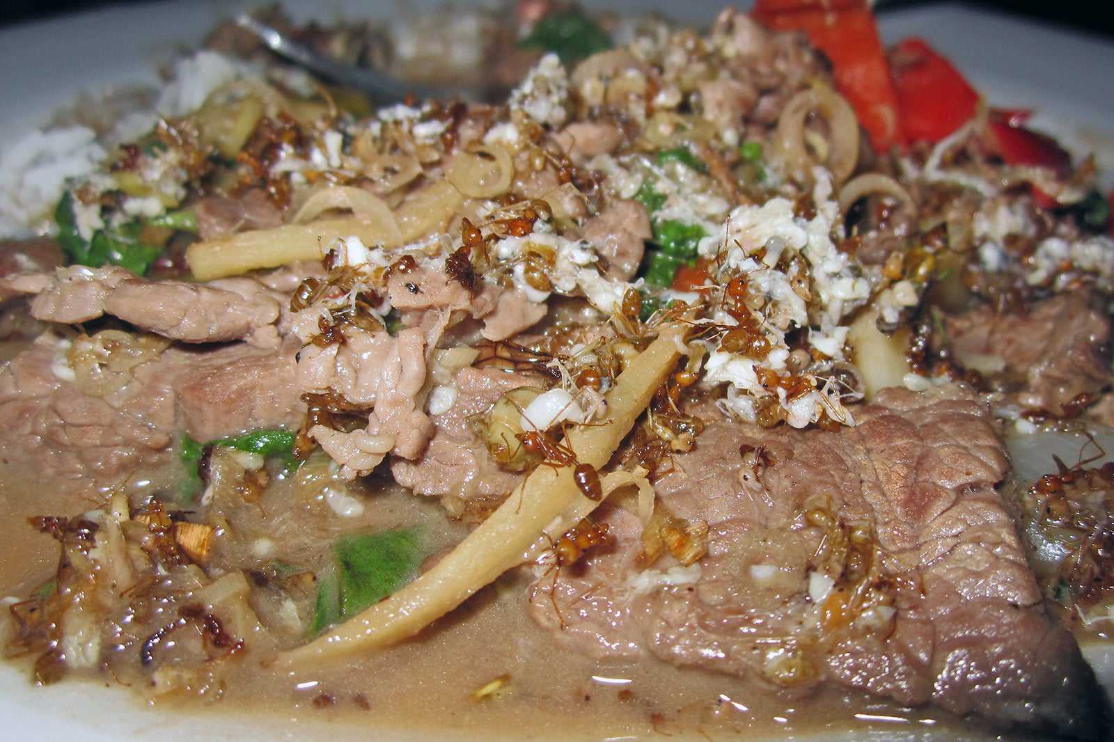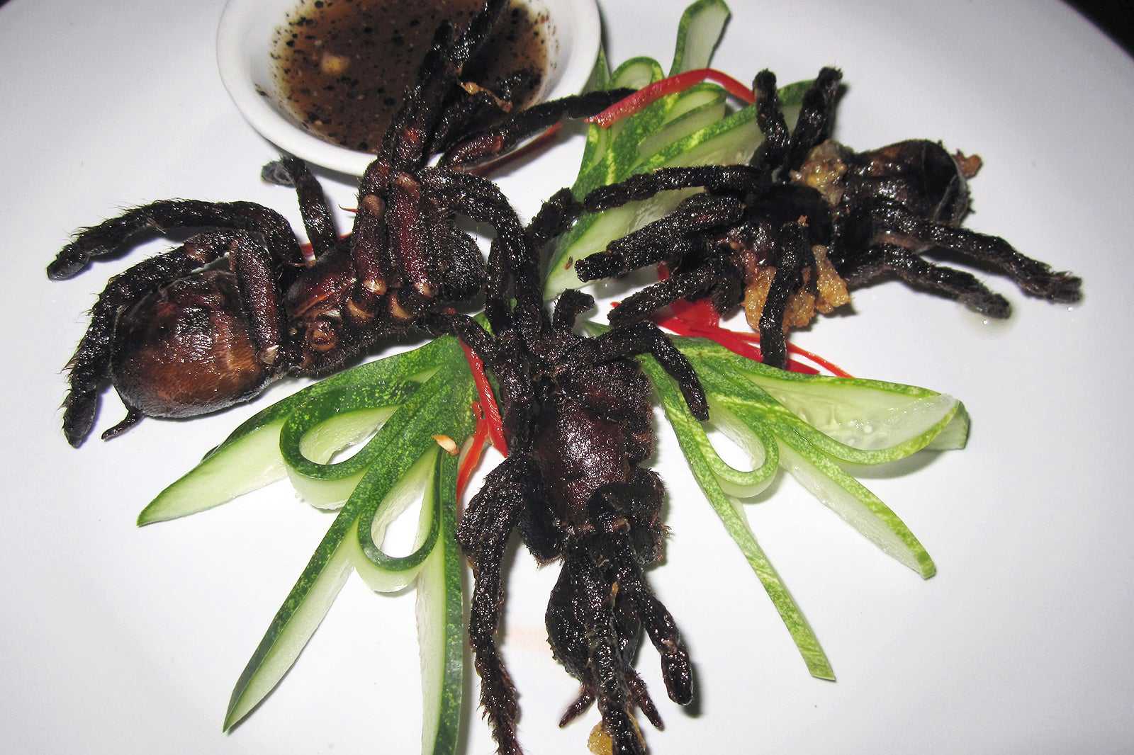 There’s also a selection of insect-based delicacies for daring diners, such as crispy tarantula and stir-fried red tree ants with beef fillet and holy basil. For dessert, we highly recommend the coconut and pandan crepes, topped with young coconut, peanuts, and pineapple ice cream.
