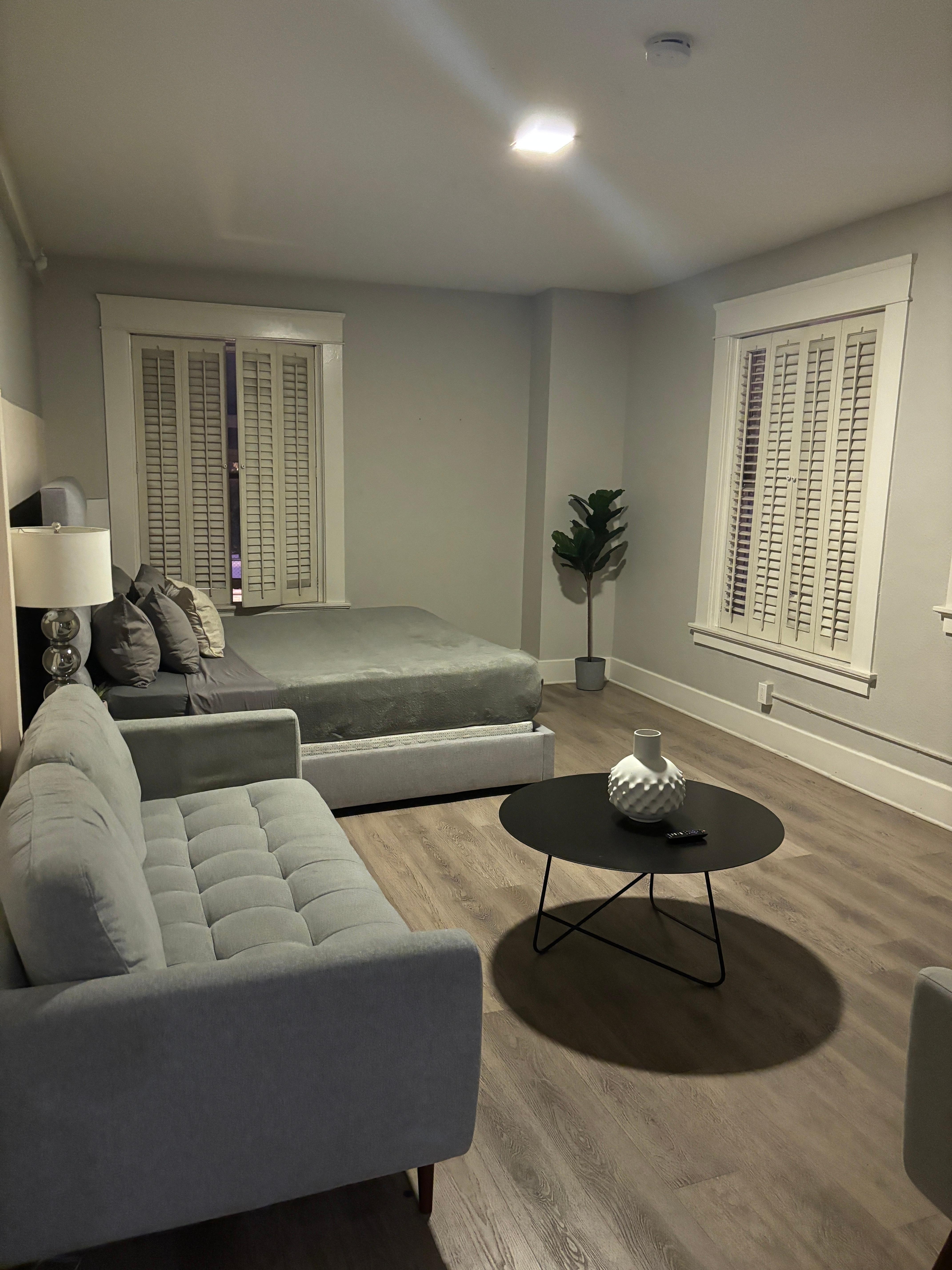 I left as soon as I arrived. This is not a real hotel but rather apartments/condos in a historic hotel building. There's no lobby, and the communication with staff was spotty. The entrance was crowded with trash cans and unhoused people. The elevator is extremely dated. The room was clean and updated, but all of the windows were cracked open when I arrived and one window didn't shut. Multiple lightbulbs out. The bed comforter/blanket had a cigarette burn in it. At night, the area is filled with people, music and police sirens. There's a club below it, so you can hear music throughout the entire night.