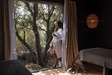 Nous avons passé un séjour génial ! L’extérieur est magnifique! La chambre très spacieuse avec une décoration raffinée, ainsi que la salle de bain. Sans oublier la Terrasse, la vue sur les montagnes et le petit jardin ! La piscine à débordement, un havre de tranquillité ! Le jacuzzi, un endroit magnifique ! Le personnel très à l’écoute. Tout étais parfait !!